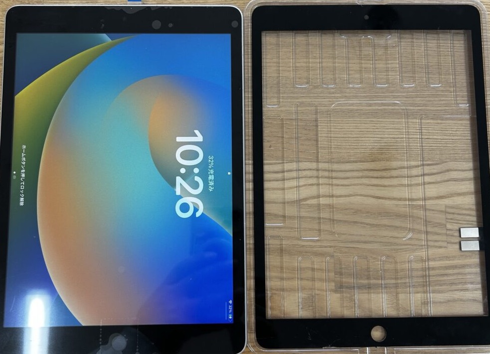 ガラス割れはフロントガラスの交換で対応します。ホームボタンは指紋認証が必要なので、元のホームボタンを移植します。