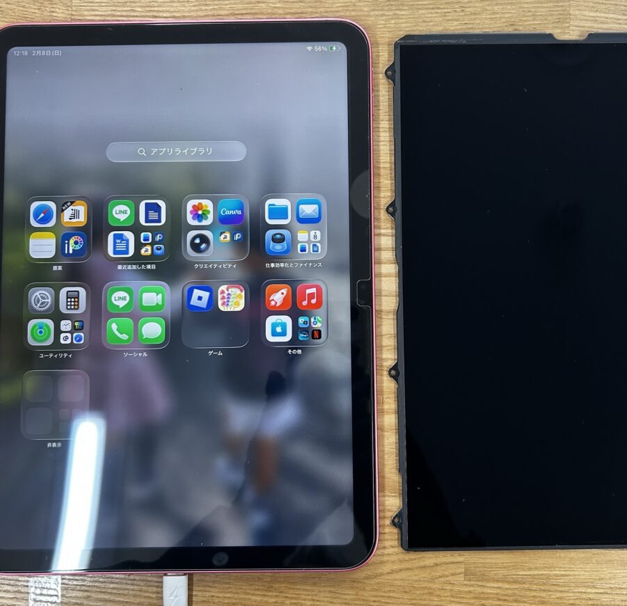 最新のiPad、なぜか液晶が映らなくなりました。交換したところ復活できました。原因は不明ですが、たまにこんなことがあります。