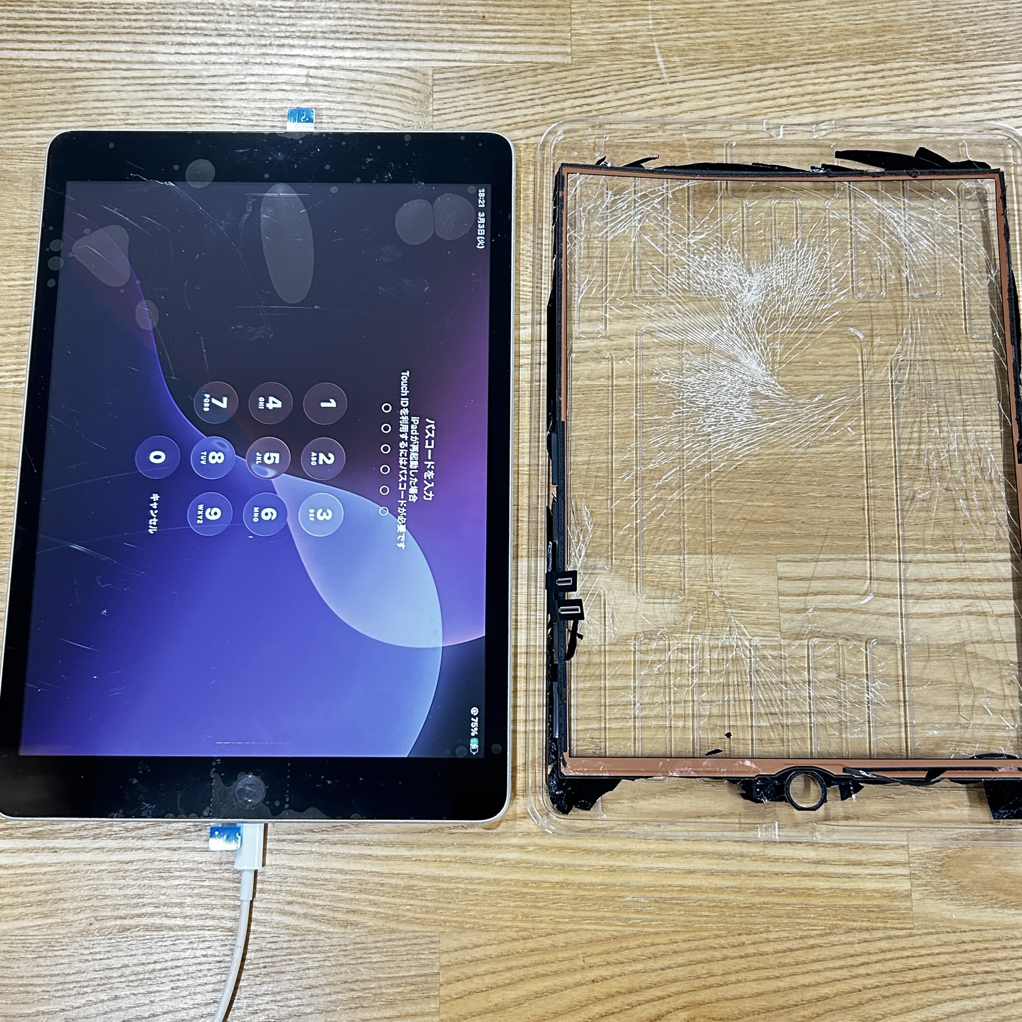 ガラス割の交換修理です。1時間半ほどでお渡し完了まで。ボタンの指紋認証も問題なく移ります!